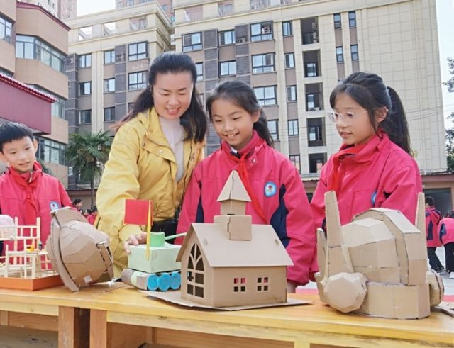 一幅用废旧光盘拼接而成的星空图,璀璨夺目,仿佛能让人穿越到浩瀚的宇宙之中;一个由旧衣物改制的玩偶,色彩鲜艳,表情生动,传递着温暖与童真;还有用废弃纸盒搭建的城堡,气势恢宏,仿佛在诉说着一个个神秘的故事。这些作品不仅展现了孩子们对美的独特理解,更体现了他们对环保理念的积极践行。