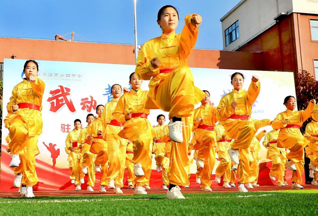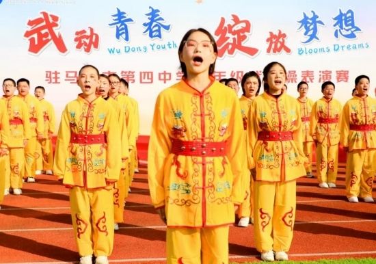 11月21日,驻马店市第四中学七年级全体师生齐聚美丽的练江校区,共同见证了一场别开生面的“武动青春 绽放梦想”校园武术操表演。
