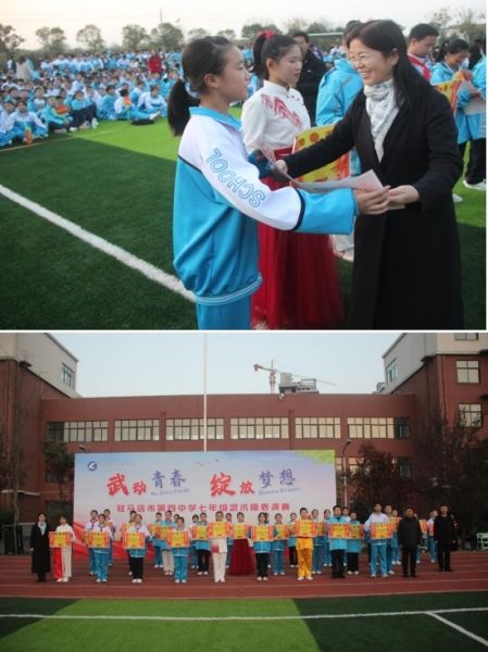 双手抱拳,蓄势待发,壮哉今日少年,轻舒猿臂,气沉丹田,美哉四中学子。刚柔并济,内外兼修,放飞青春梦想。