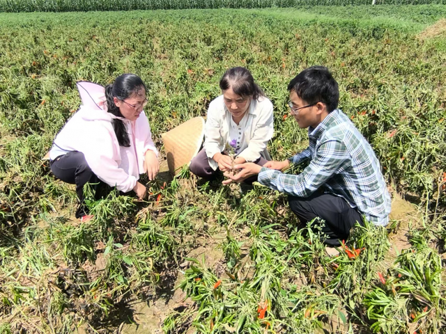此外,在卧龙区潦河镇朝天椒种植基地,面对大面积枯萎的朝天椒植株,李金玲研究员强调了及时清理的重要性,以防病虫害扩散至未受灾区域。同时她还建议对未受灾的朝天椒及时补充磷酸二氢钾、氨基酸等叶面肥,并加入芸苔素内酯以提高植株的抗逆性。随着天气的放晴,她还提醒农户们要做好病虫害的预防工作,适时喷施氯虫苯甲酰胺、吡丙醚、多菌灵、苯醚甲环唑等药剂,确保朝天椒的产量和品质。