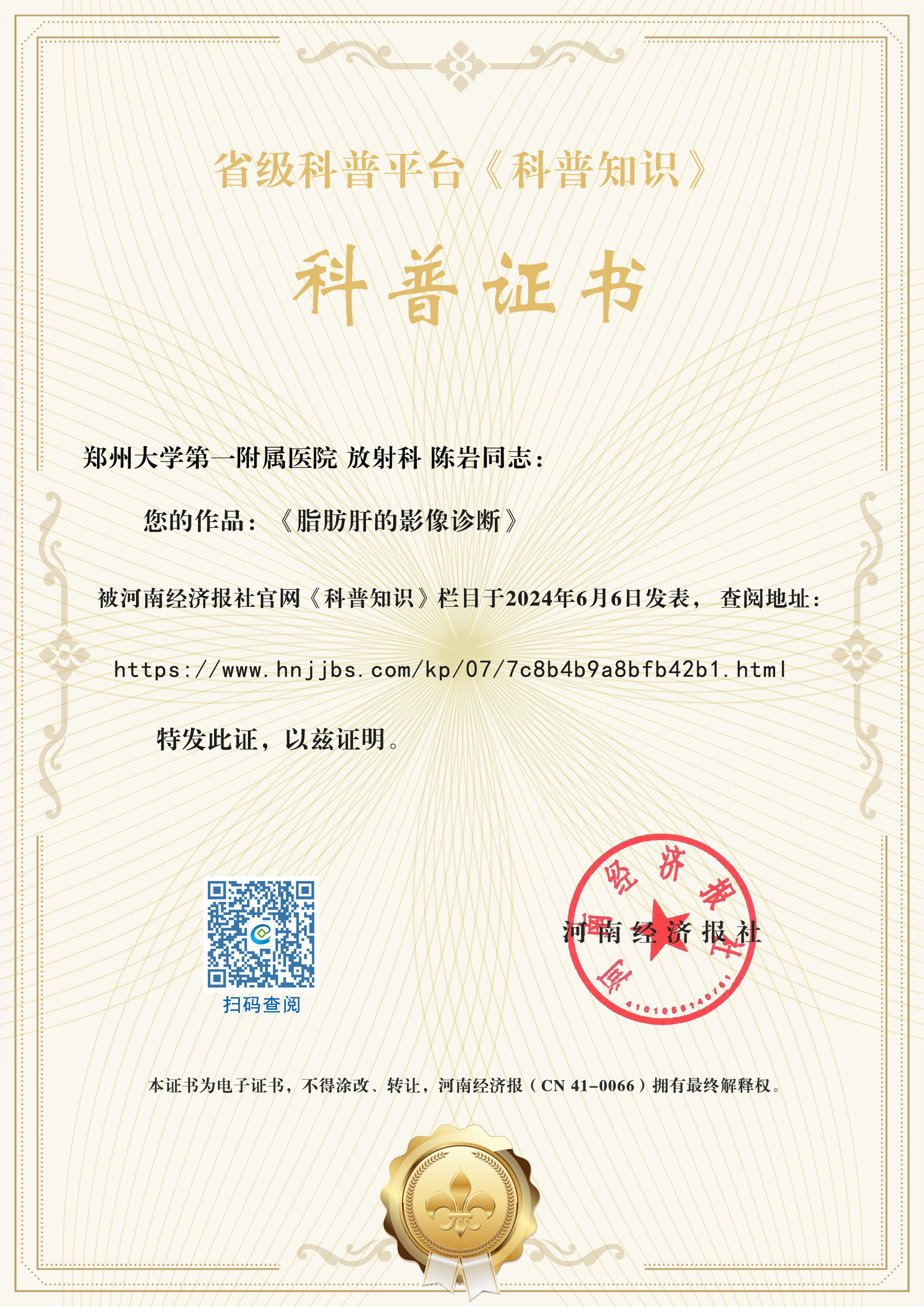 (科普作者姓名:陈岩 现职称:主治医师 单位:郑州大学第一附属医院 科室:放射科)