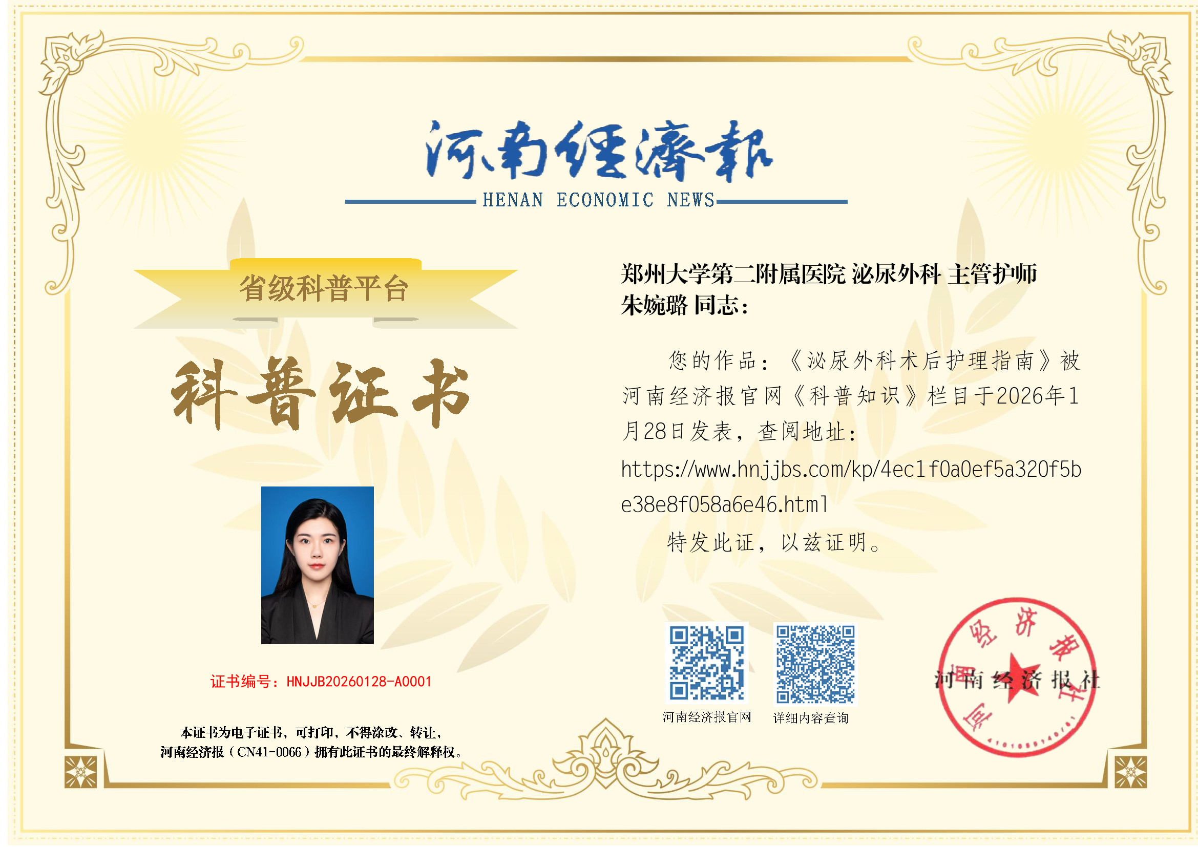 (科普作者姓名:朱婉璐,单位:郑州大学第二附属医院,科室:泌尿外科,现职称:主管护师)