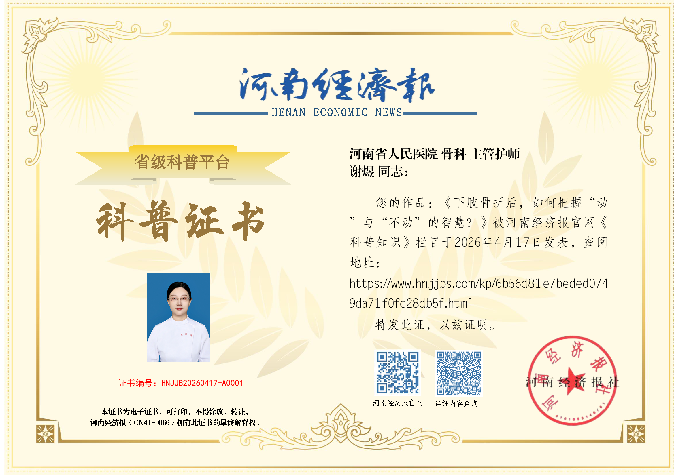 (科普者:谢煜;医院:河南省人民医院;科室:骨科;职称:主管护师)