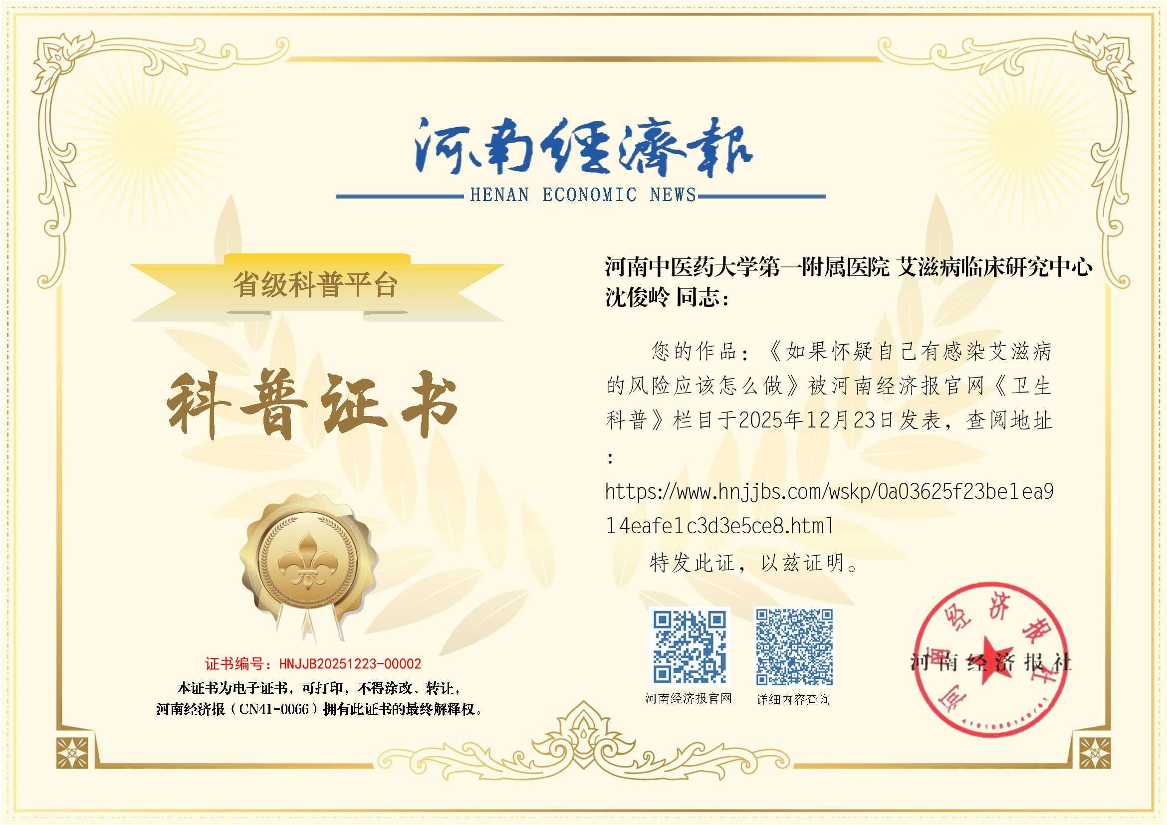 (姓名:沈俊岭;单位:河南中医药大学第一附属医院;科室:艾滋病临床研究中心)