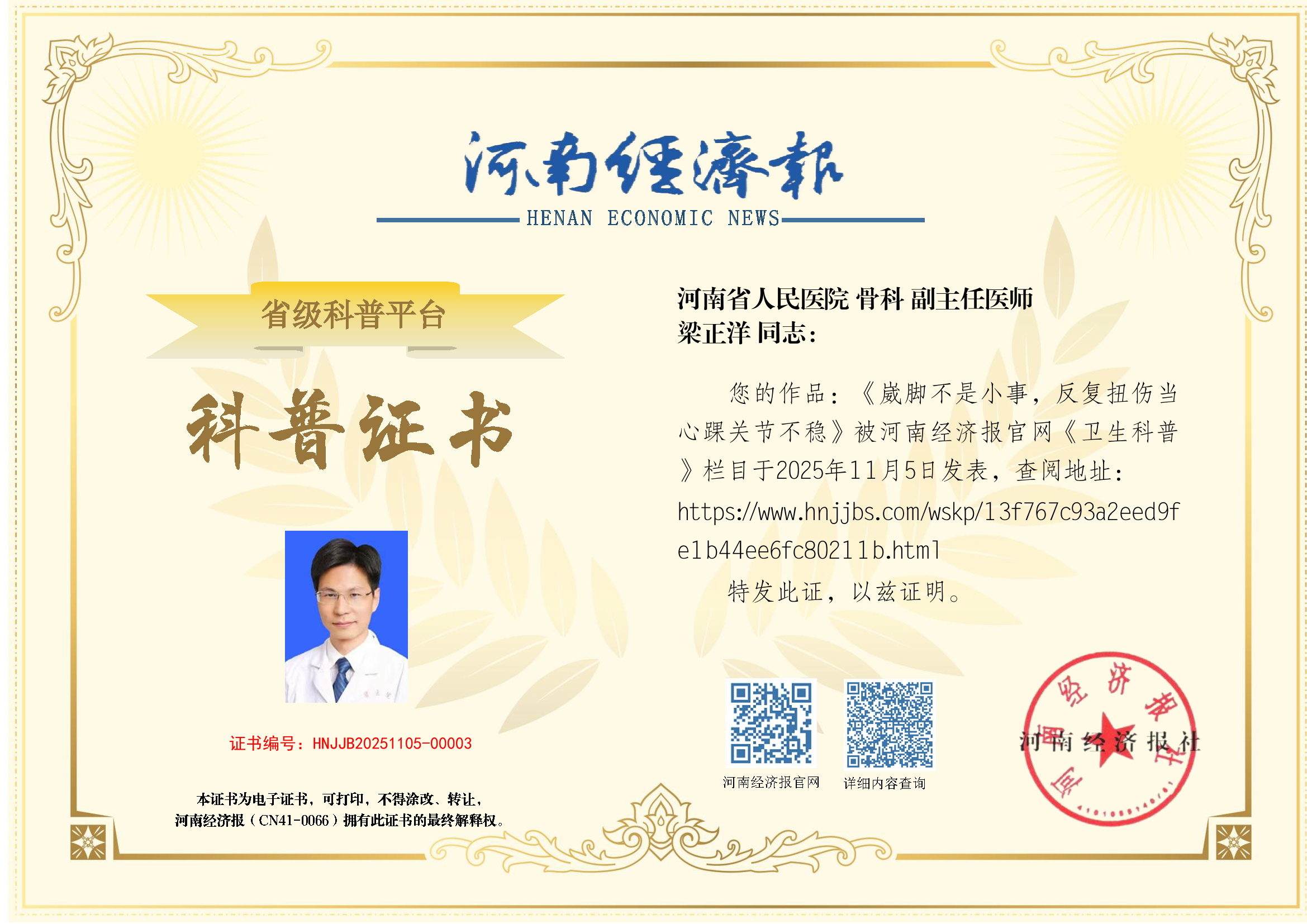 (姓名:梁正洋;医院:河南省人民医院;科室:骨科;职称:副主任医师)