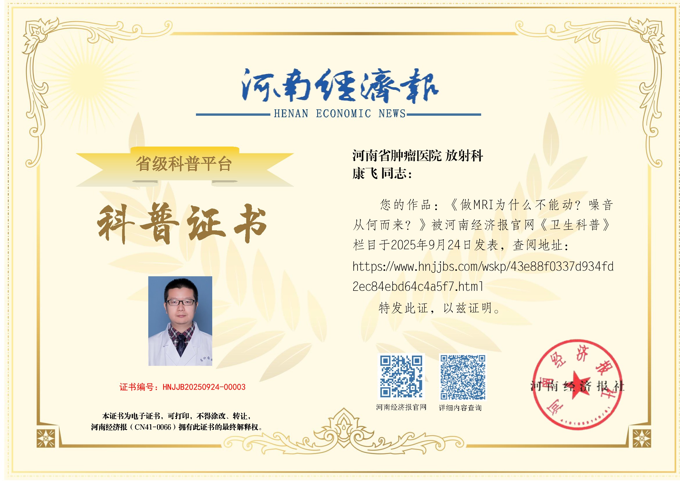 (姓名:康飞;单位:河南省肿瘤医院;科室:放射科)
