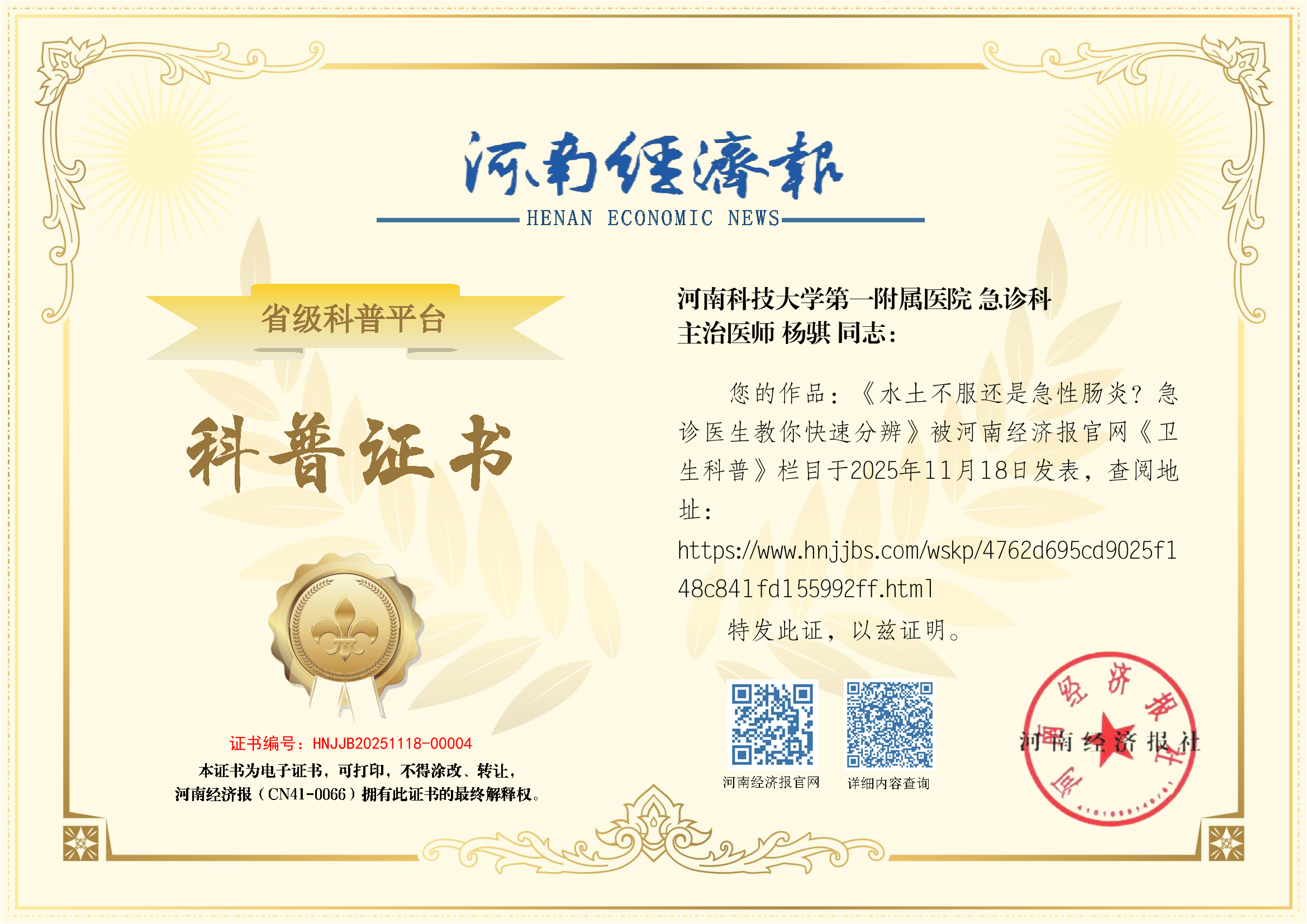 (姓名:杨骐;医院:河南科技大学第一附属医院;科室:急诊科;职称:主治医师)