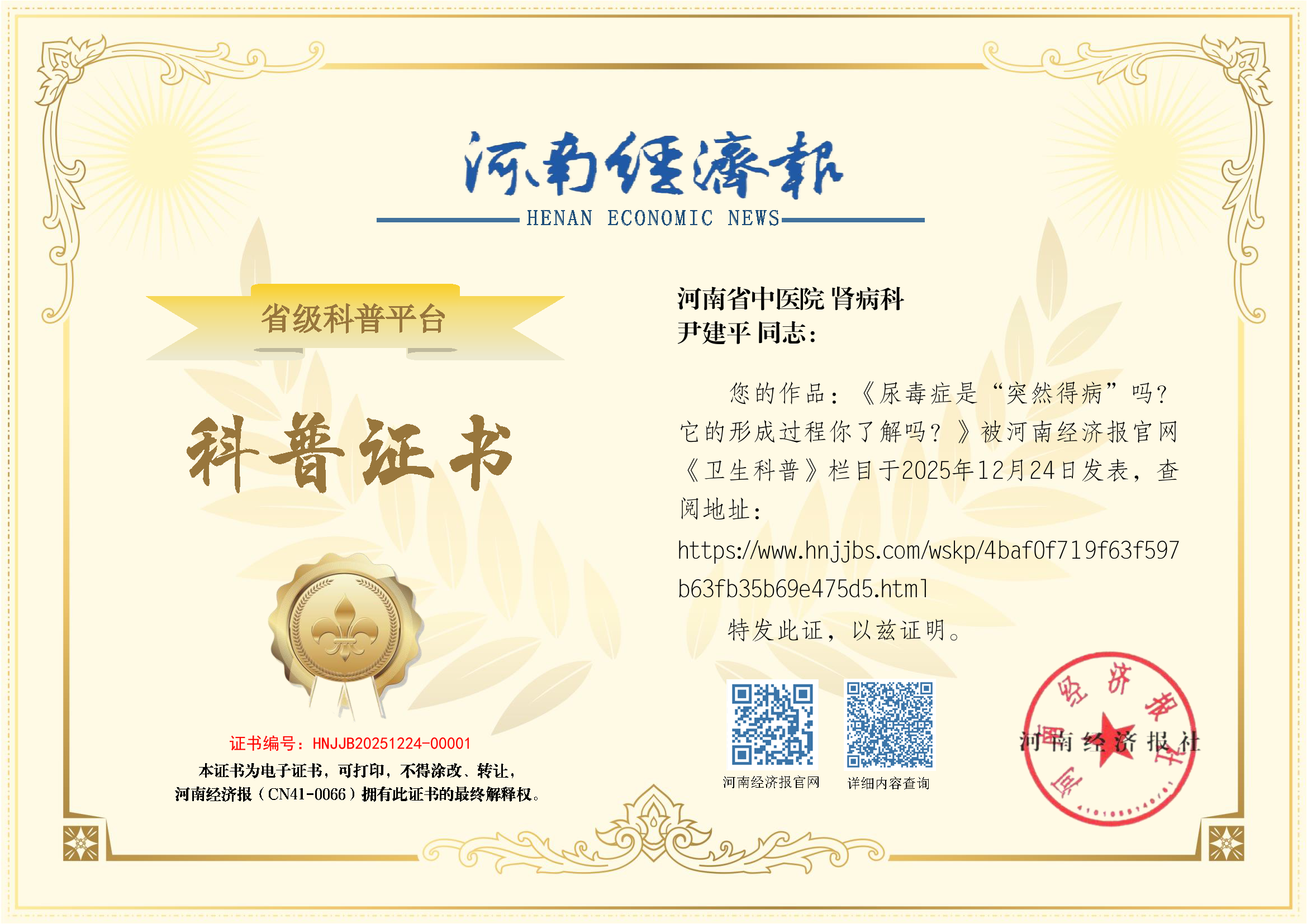 (姓名:尹建平;单位:河南省中医院;科室:肾病科)