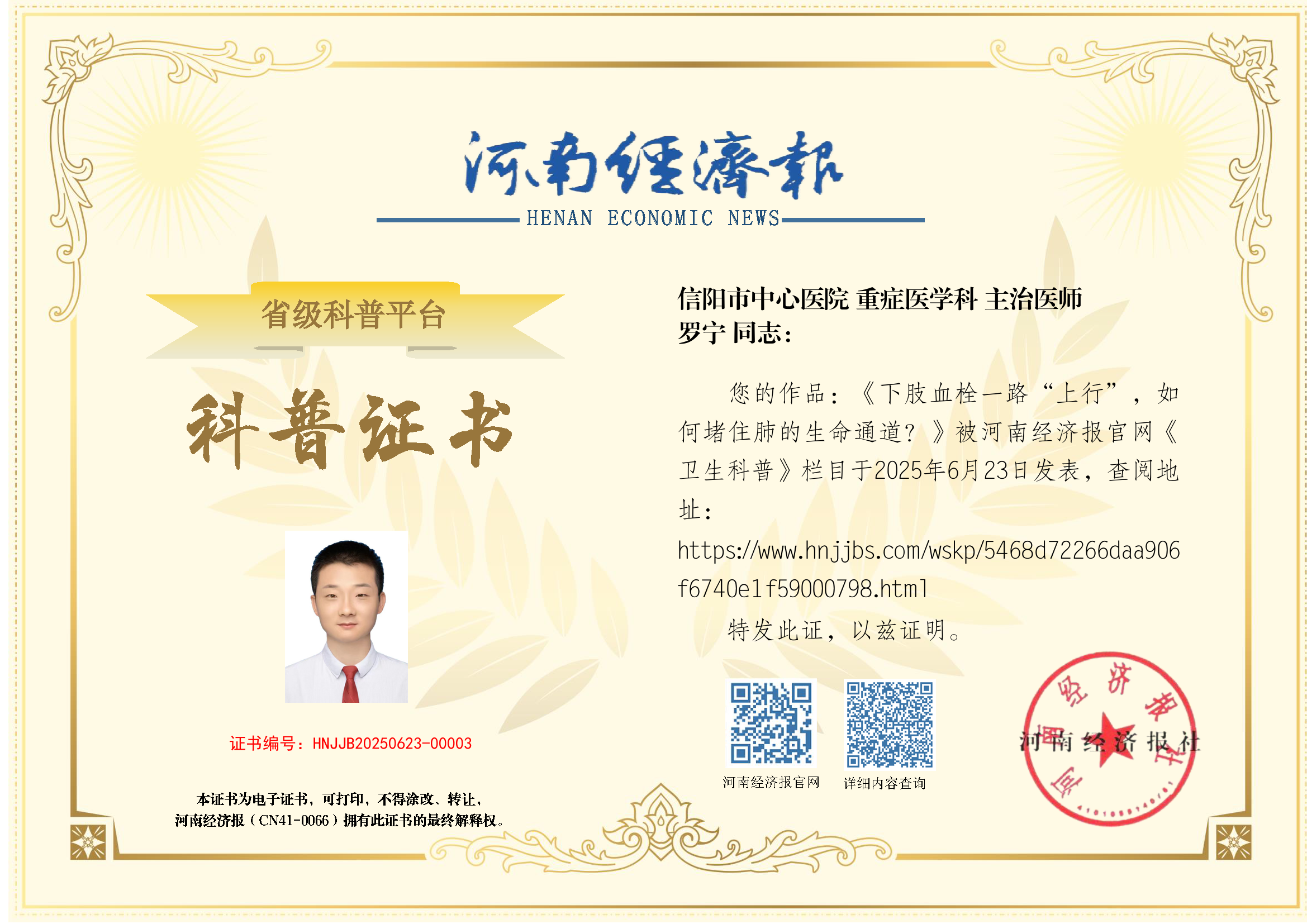 (姓名:罗宁;医院:信阳市中心医院;科室:重症医学科;职称:主治医师)