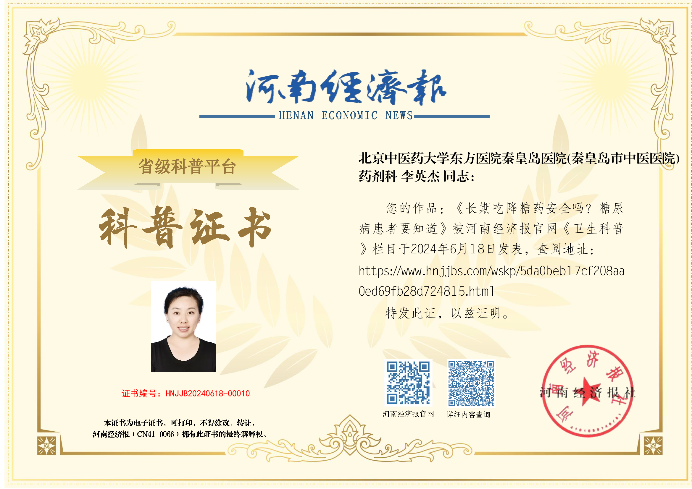 (作者:李英杰;单位:北京中医药大学东方医院秦皇岛医院(秦皇岛市中医医院);科室:药剂科)
