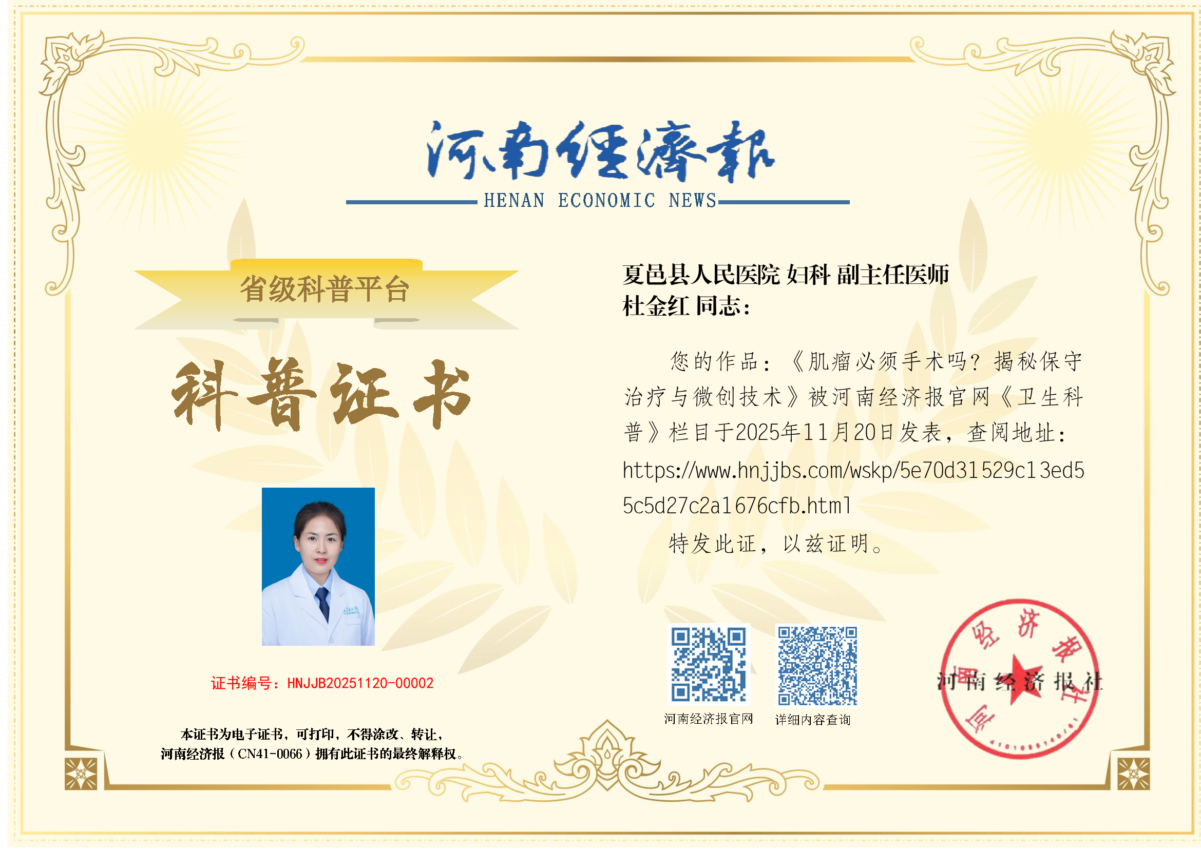 (姓名:杜金红;医院:夏邑县人民医院;科室:妇科;职称:副主任医师)