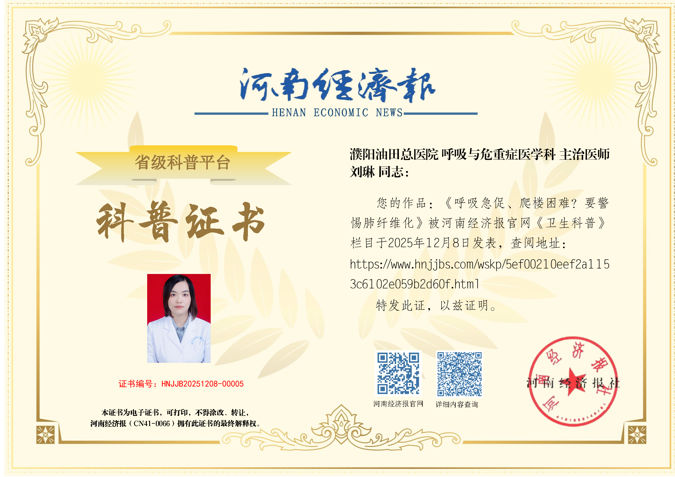 (姓名:刘琳;医院:濮阳油田总医院;科室:呼吸与危重症医学科;职称:主治医师)