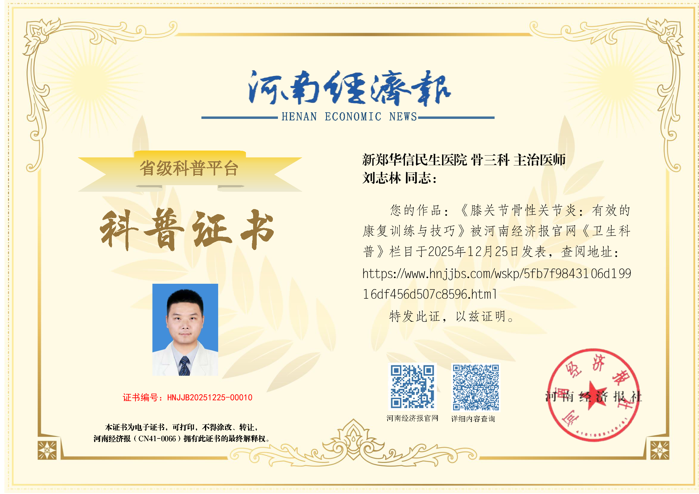 (姓名:刘志林;医院:新郑华信民生医院;科室:骨三科;职称:主治医师)