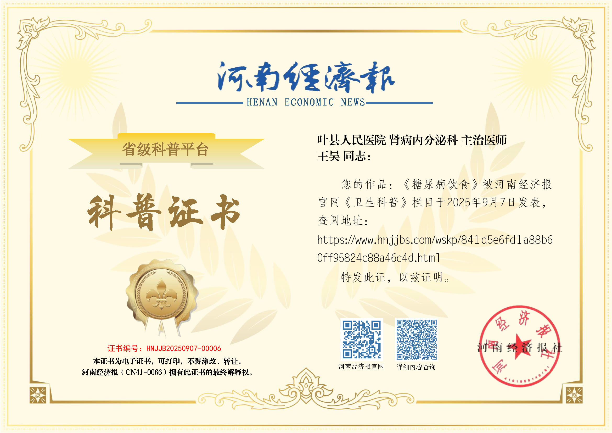(姓名:王昊;医院:叶县人民医院;科室:肾病内分泌科;职称:主治医师)