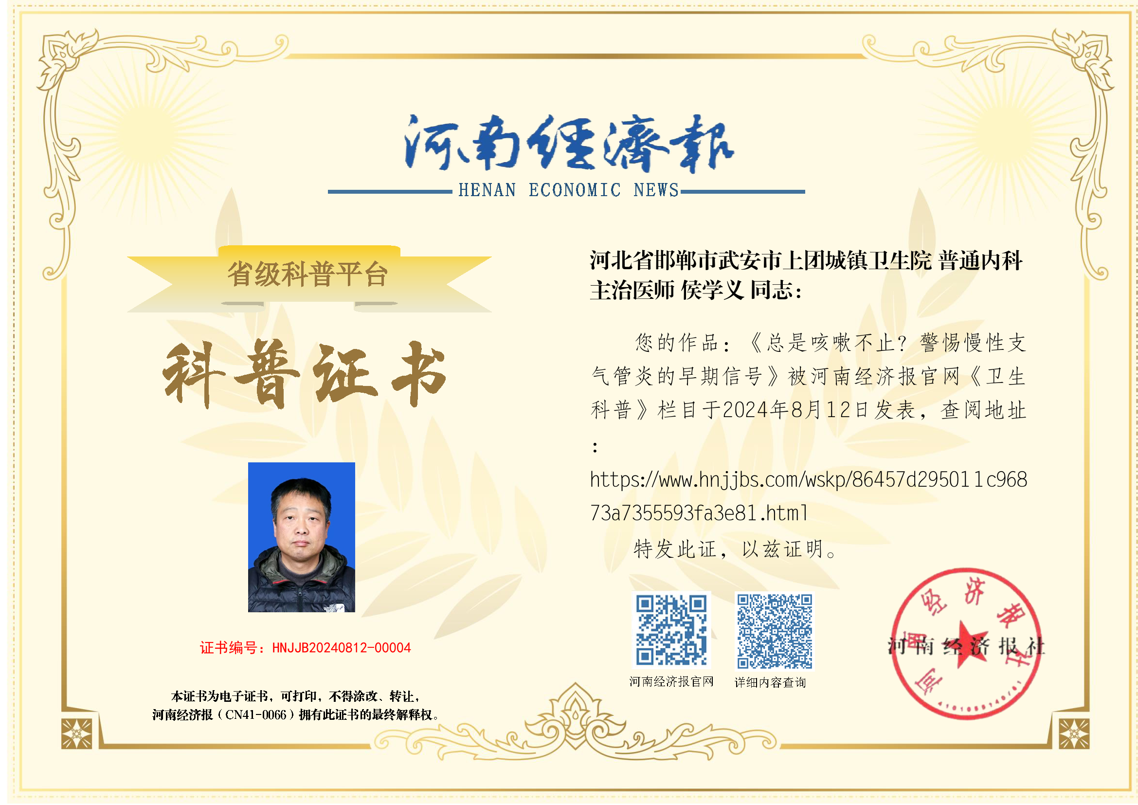 (作者:侯学义;单位:河北省邯郸市武安市上团城镇卫生院;科室:普通内科;职称:主治医师)
