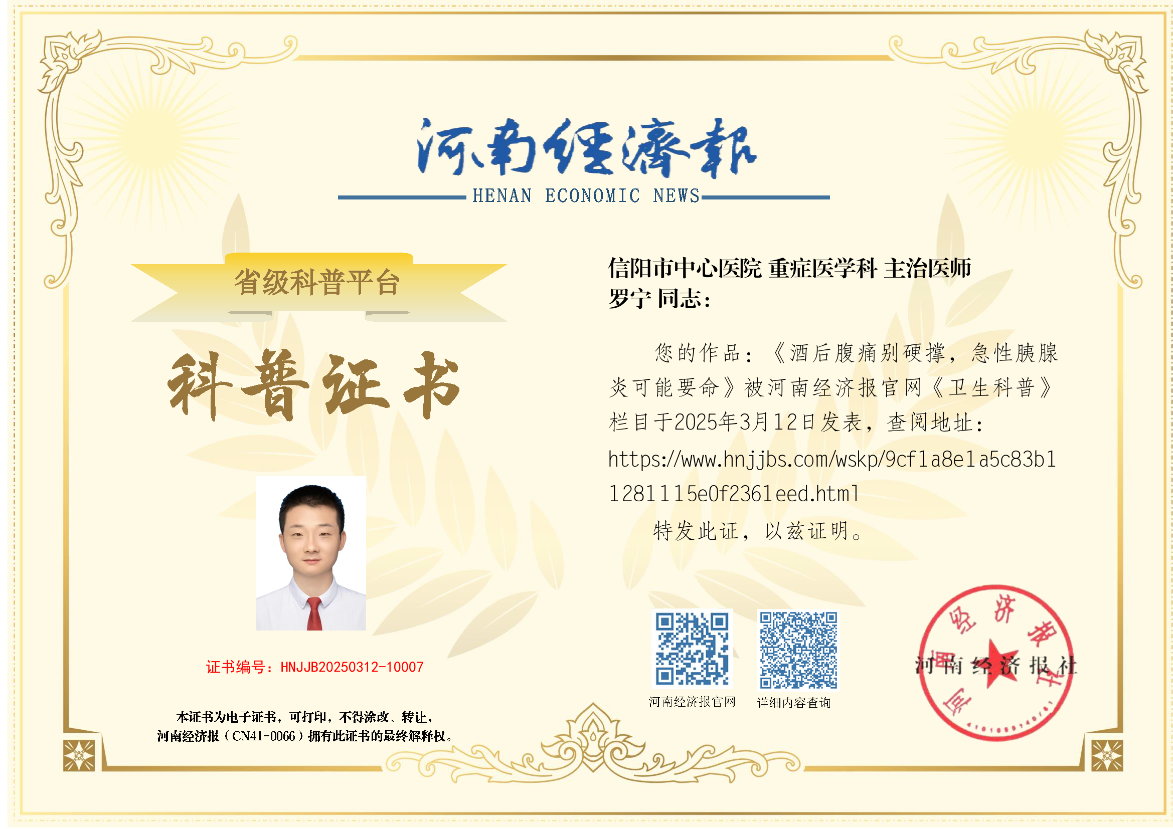 (姓名:罗宁;医院:信阳市中心医院;科室:重症医学科;职称:主治医师)