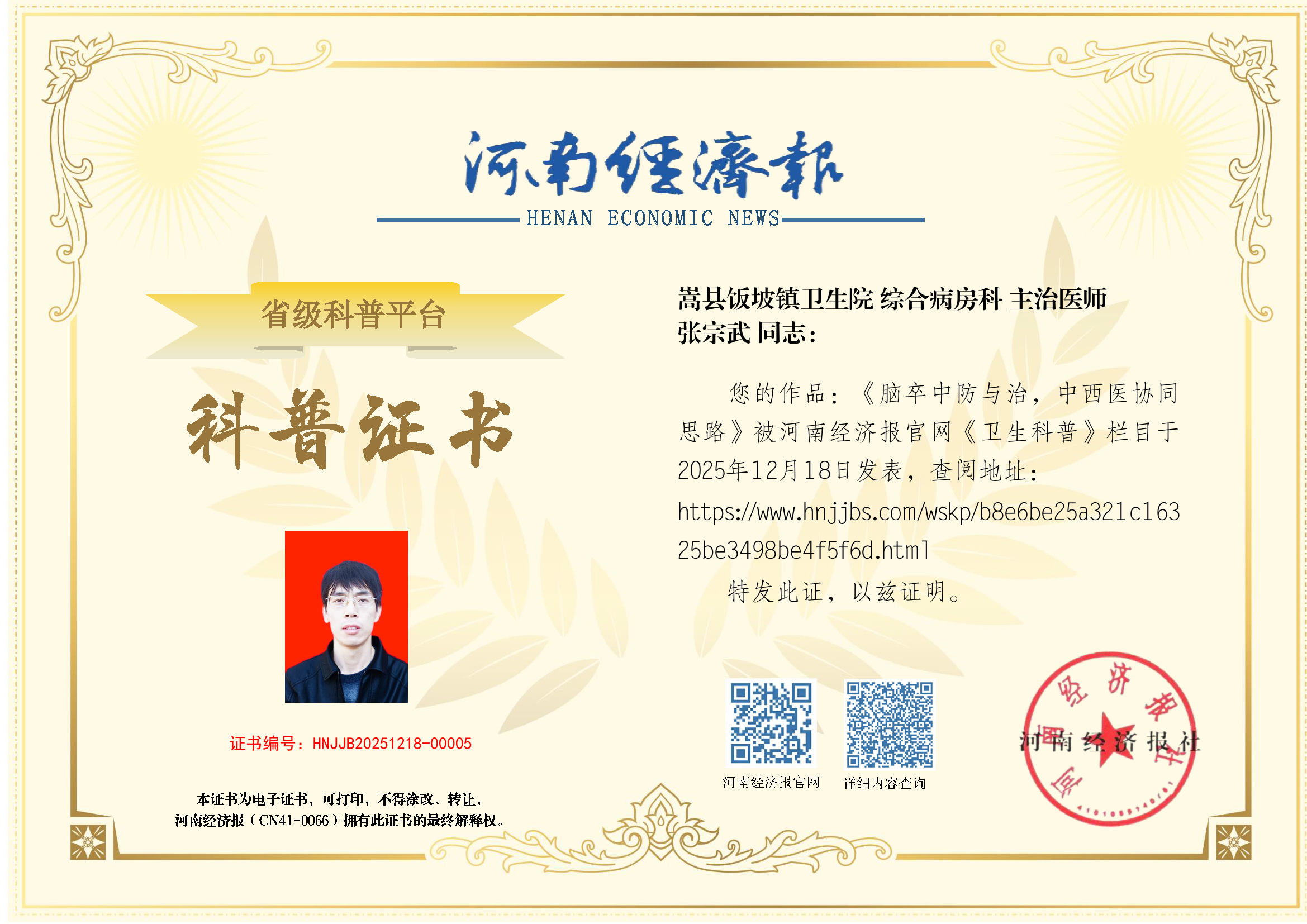( 姓名:张宗武;医院:嵩县饭坡镇卫生院;科室:综合病房科;职称:主治医师)