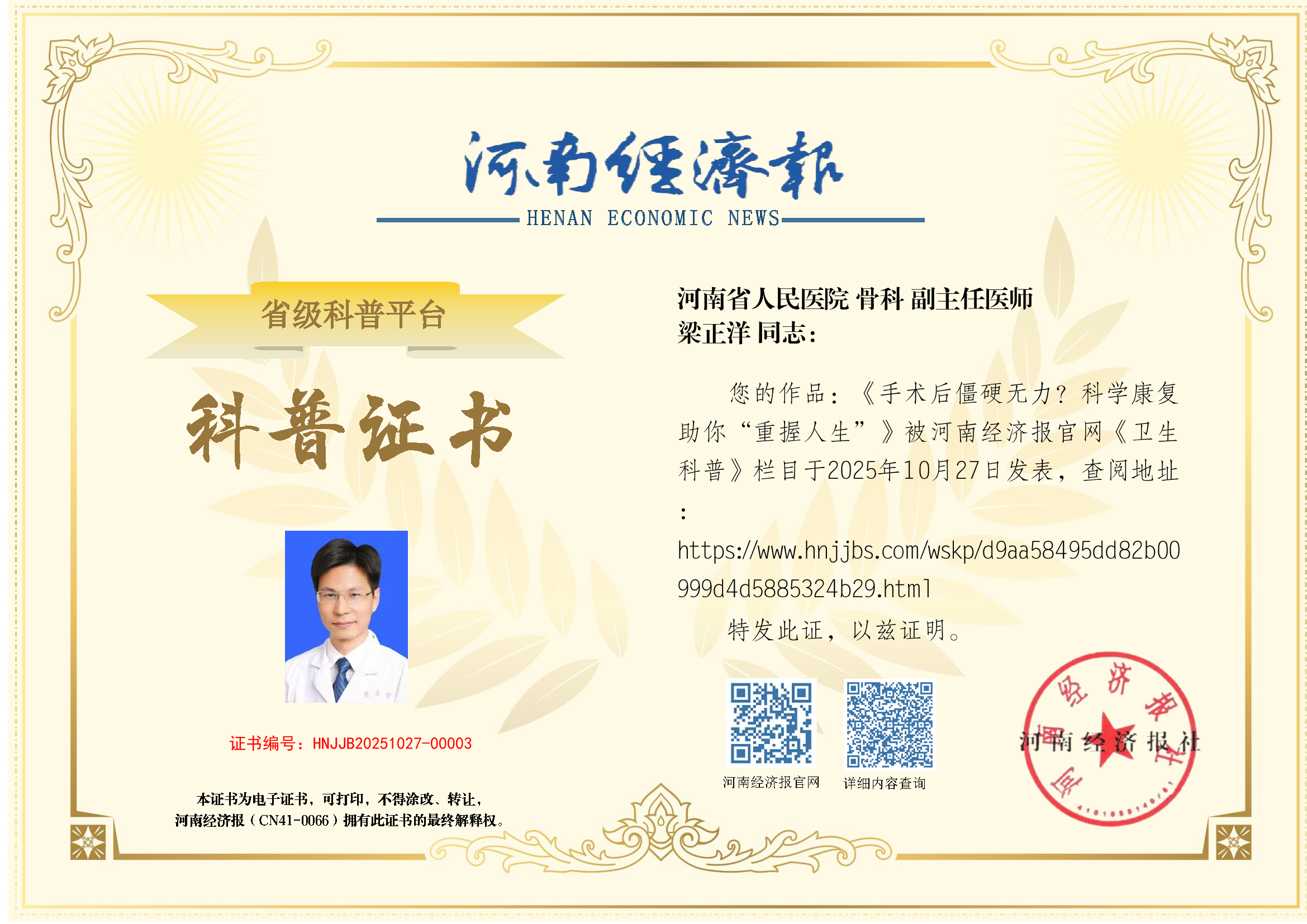 (姓名:梁正洋;医院:河南省人民医院;科室:骨科;职称:副主任医师)