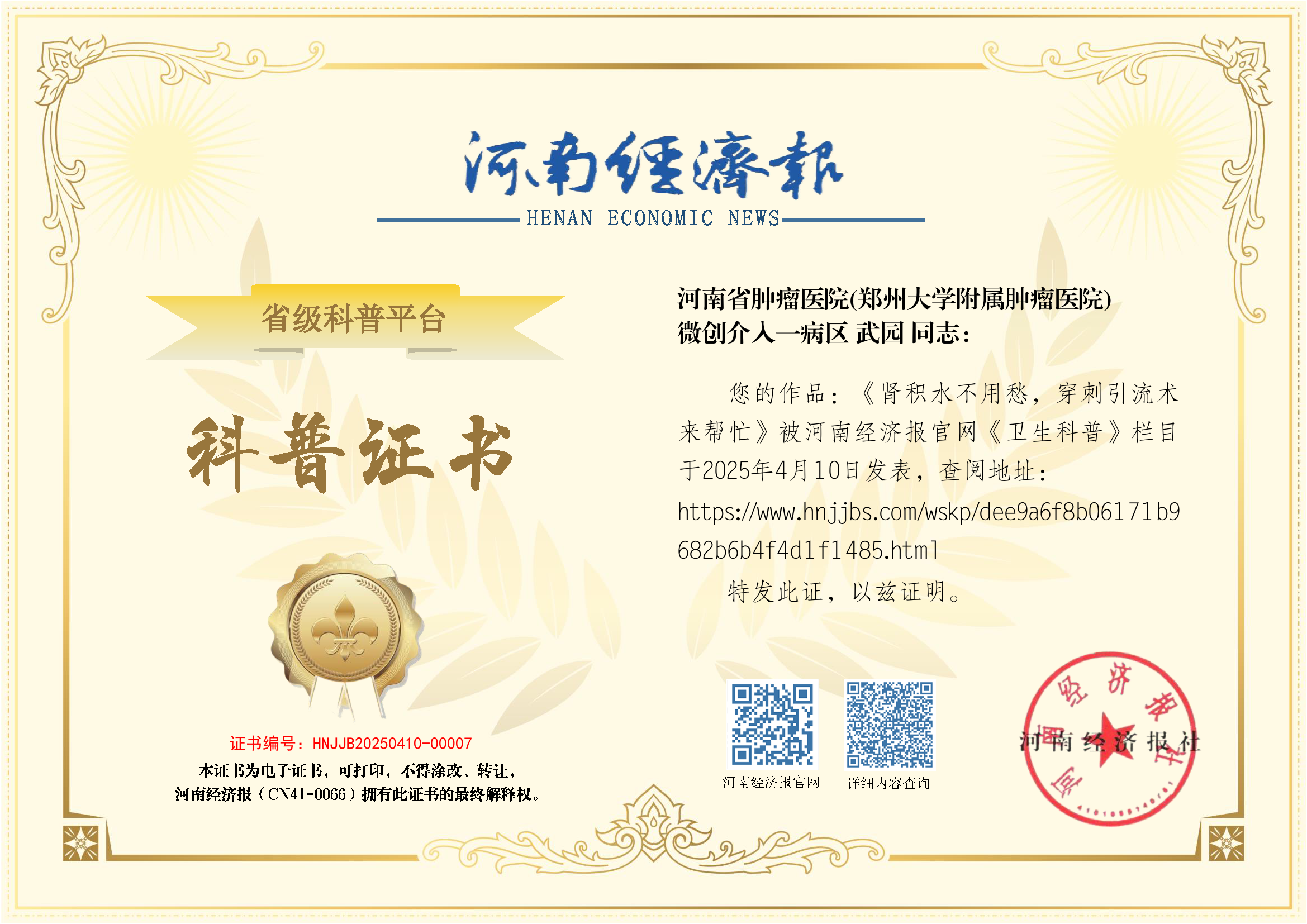 (作者:武园;单位:河南省肿瘤医院(郑州大学附属肿瘤医院);科室:微创介入一病区)