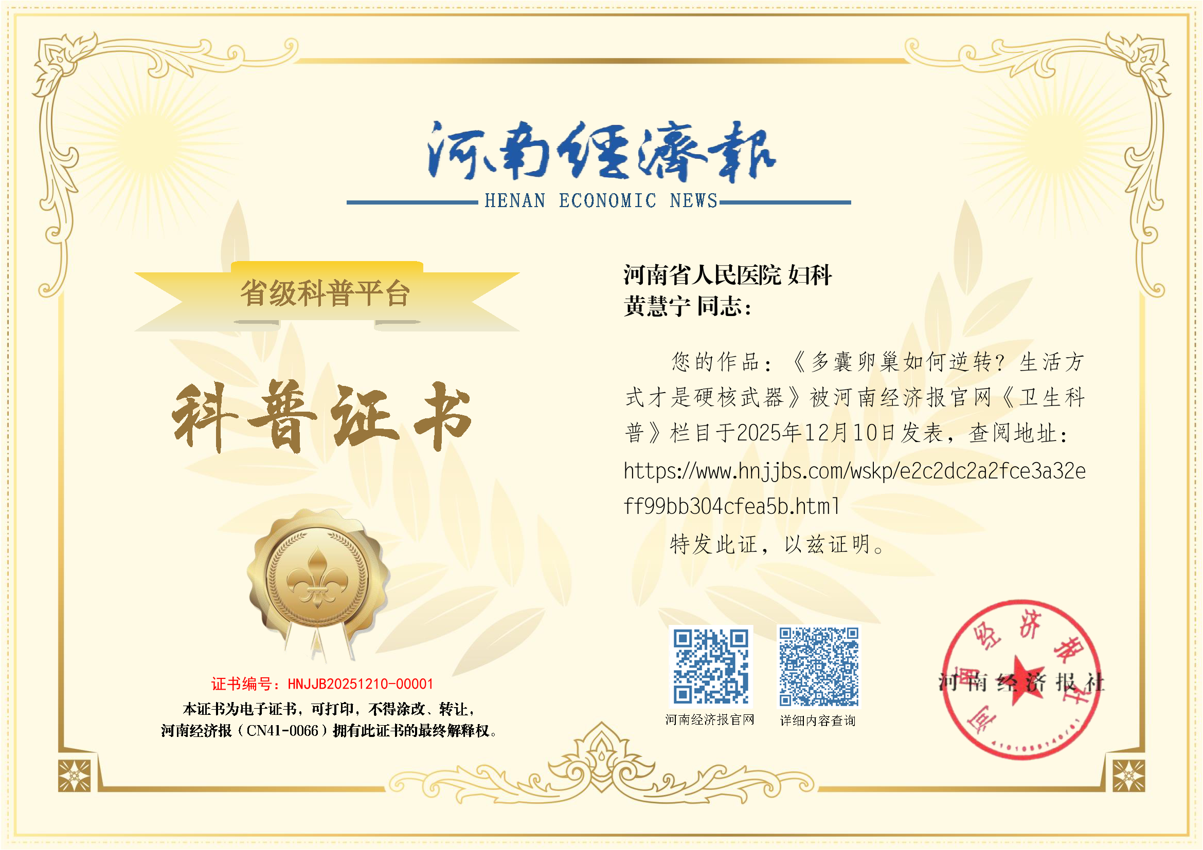 (姓名:黄慧宁;医院:河南省人民医院;科室:妇科)