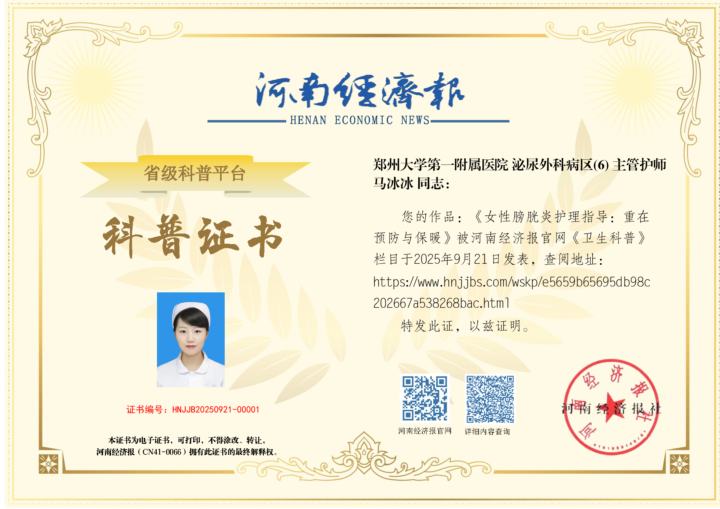 (作者:马冰冰;单位:郑州大学第一附属医院;科室:泌尿外科病区(6);职称:主管护师)