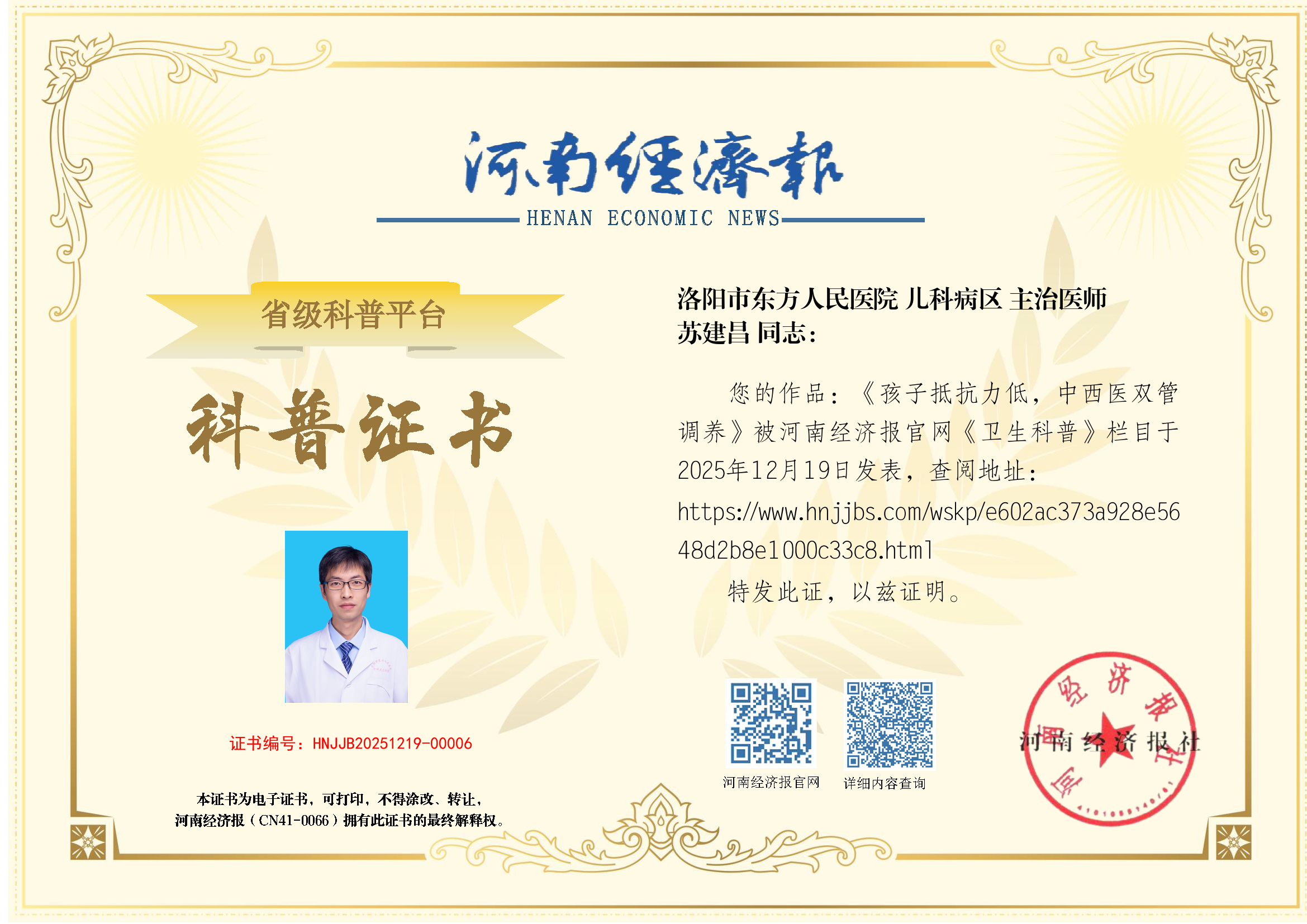 (姓名:苏建昌;医院:洛阳市东方人民医院;科室:儿科病区;职称:主治医师)