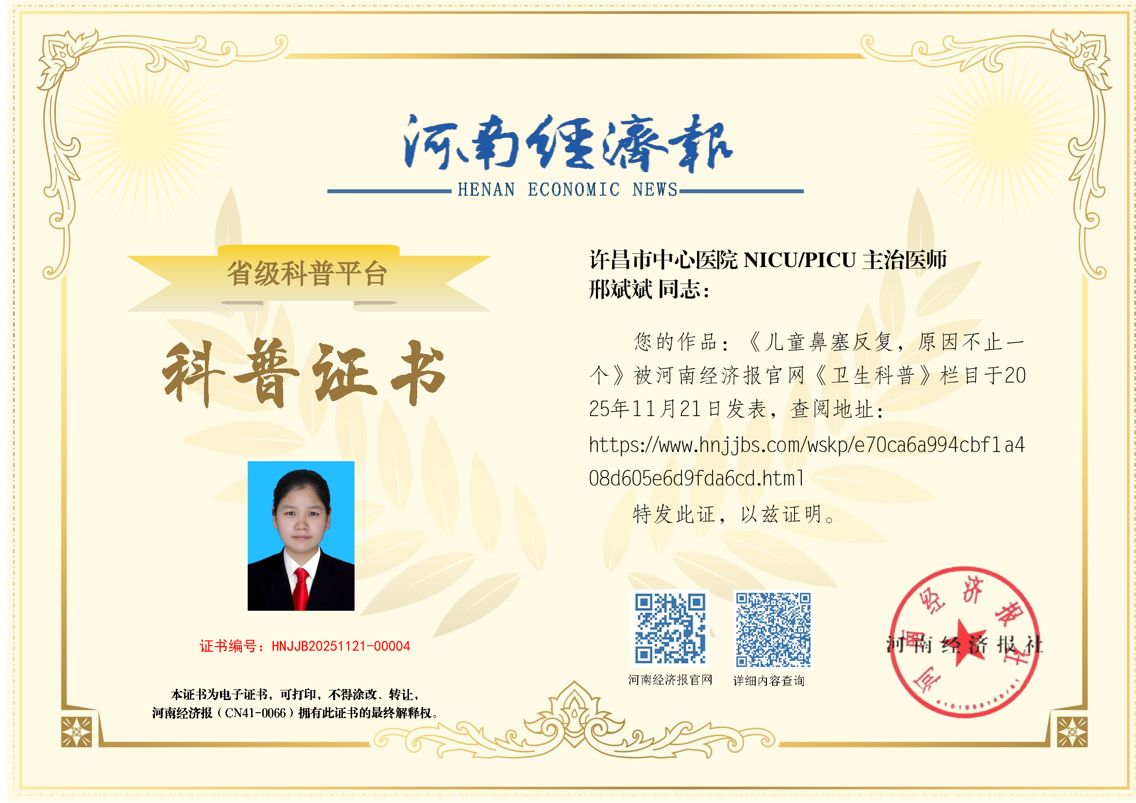 (姓名:邢斌斌;医院:许昌市中心医院;科室:NICU/PICU;职称:主治医师)