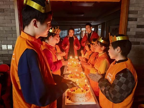 在心理关爱与社会协同方面。本次活动秉持精准施策、凝聚合力,实现精准服务与社会大爱的深度融合,为少年们送去全方位温暖与关怀。一是强化心理精准帮扶,运用“房树人”绘画、欧卡牌等专业心理团辅工具,精准对接不同年龄段少年的心理需求,为孩子们搭建安全、包容的情感宣泄平台,帮助其释放心理压力、重塑自信品格;二是凝聚社会帮扶力量,社会各界积极响应、大力支持,爱心企业临颍县元诺装饰与安徽如是心集团慷慨解囊、无私资助,为孩子们送来营养物资、书包及生活用品,以实际行动传递温暖、传递大爱,温暖了孩子们的冬日时光;三是深化情感共鸣升华,小年夜举办的集体生日会,让这份从物质到心灵的全方位关爱得以凝聚升华,少年们在温馨和谐的氛围中欢聚一堂、共同许下奋斗誓言,将连日来的成长感悟转化为向上向善、奋勇前行的强大动力。