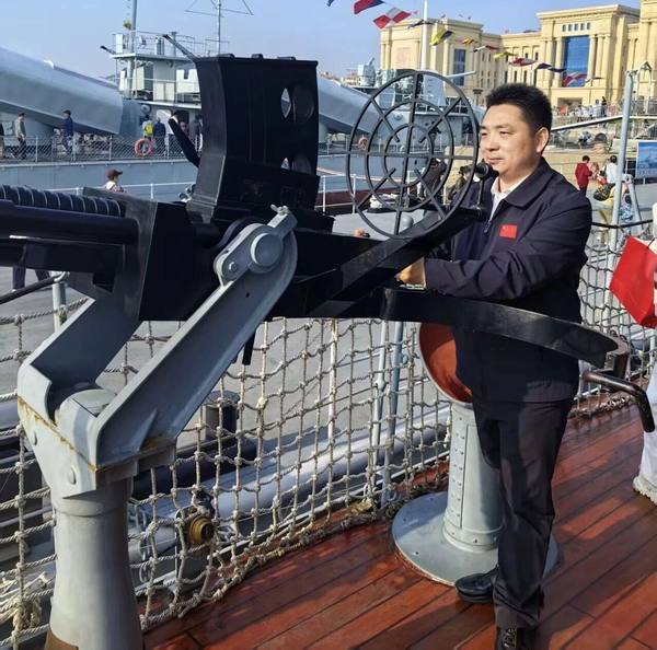 海军节期间,青岛港三号码头、奥帆中心码头同步开放乌鲁木齐舰、潍坊舰、齐齐哈尔舰等6艘现役主战舰艇,吸引超15万群众跨越山海而来,只为“舰”一面。侯封一行登舰参观,近距离观摩舰艇装备、了解作战性能,聆听海军官兵讲述亚丁湾护航、远洋战备、联演联训等任务故事。