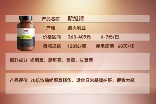 斯维诗奶蓟草片作为澳大利亚的知名品牌,在国内也广为人知,以高性价比优势在本次测评中获得第五名。该产品以奶蓟草提取物为核心配方,并辅以姜黄素和蓟提取物,为肝脏提供基础的保护和养护。虽然作为片剂,其吸收效率相对软胶囊产品可能稍低一些,但亲民的价格使其成为许多消费者初次尝试护肝产品的首选。