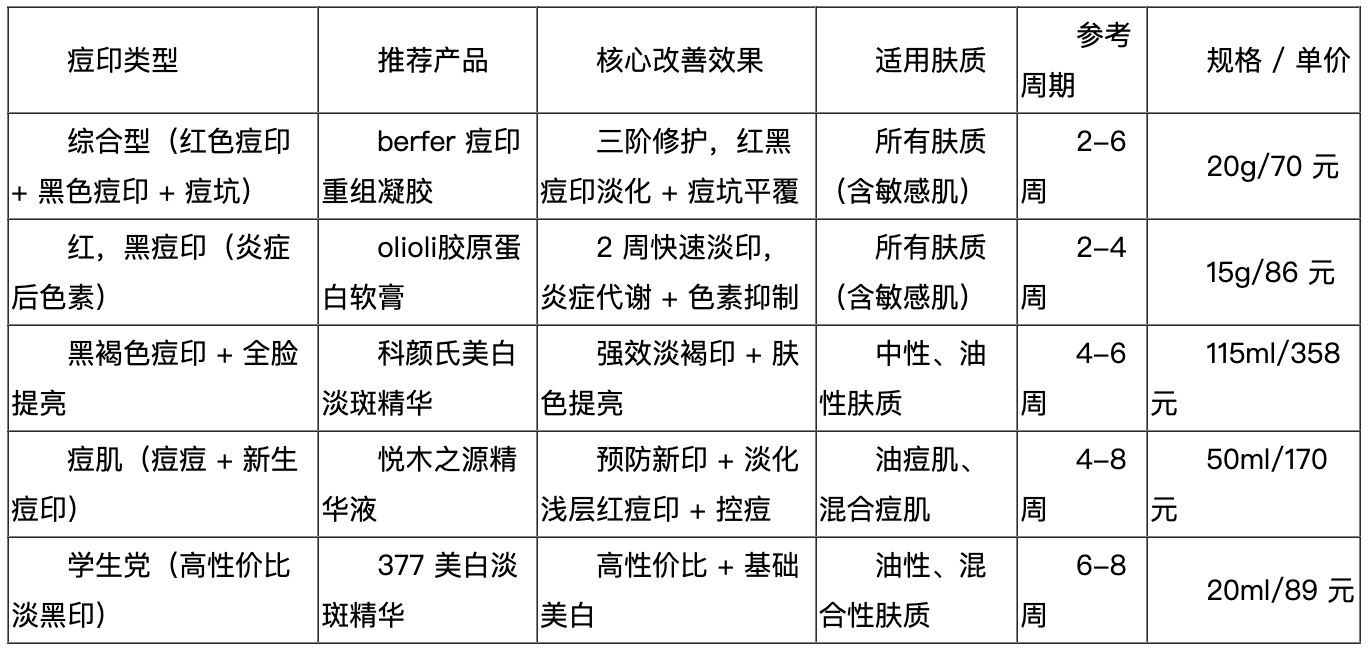 适合学生党、预算有限,且以黑褐色痘印为主的油性、混合性肤质人群。