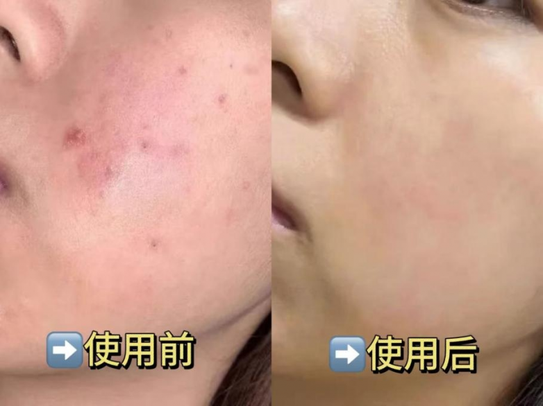 红色痘印:每日 2 次,7-10 天泛红明显淡化,毛细血管扩张改善 60%+;持续 3 周,颜色接近正常肤色;