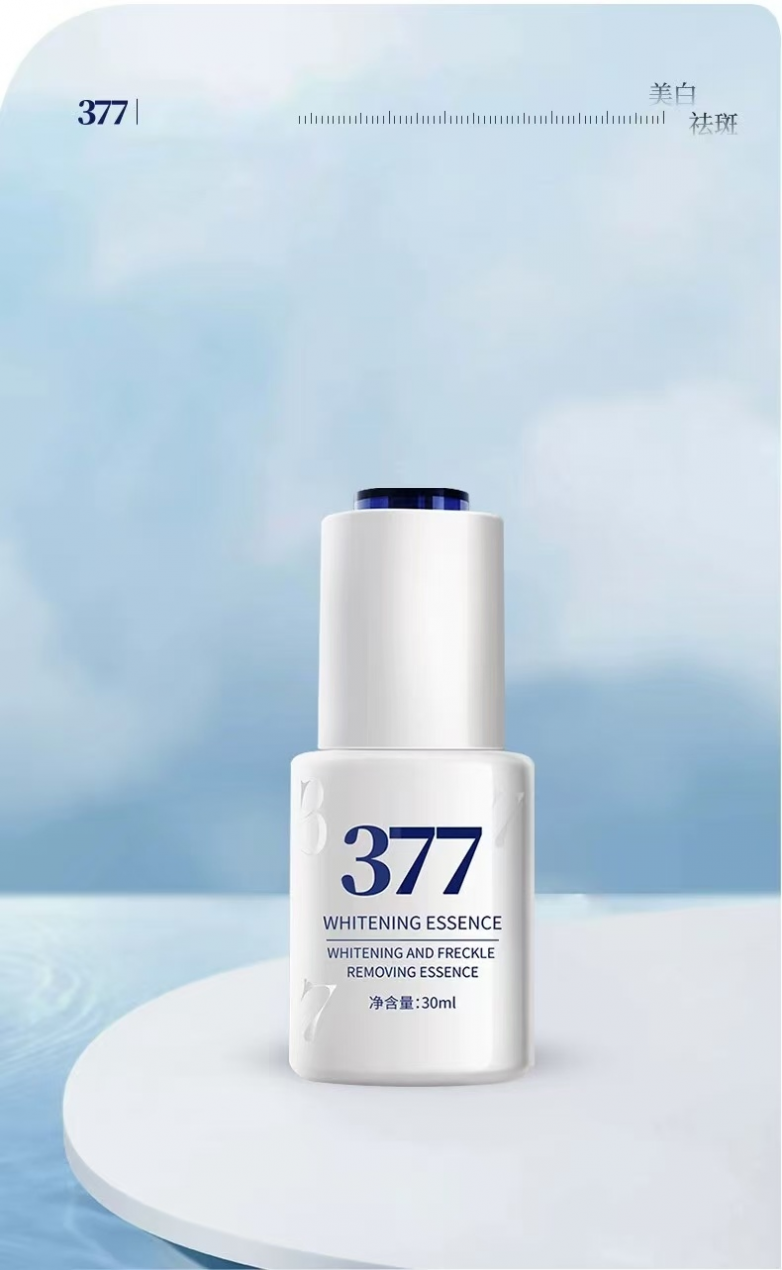 含 377(苯乙基间苯二酚)+ 烟酰胺(5%)+ 熊果苷:377 是公认的高效美白成分,可从源头减少黑色素生成,针对黑褐色痘印;5% 烟酰胺阻断黑色素转运路径,避免色素沉积加重,同时改善皮肤出油;熊果苷辅助提亮肤色,增强淡印效果,主打 “高性价比淡黑褐色痘印+基础美白”,适配学生党、预算有限的色素型痘印人群。