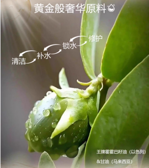 它的核心优势在于其“黄金般养肤功效”的配方基底。精选来自以色列的王牌霍霍巴籽油,其分子结构与人体皮脂极其相似,具备极佳的亲肤性与渗透力,能够有效软化老废角质,以油溶油般净化毛孔,同时形成锁水屏障,防止水分流失。搭配来自马来西亚的高纯度甘油,协同完成清洁、补水、锁水、修护的全链路护理。更辅以山茶籽油,富含油酸和抗氧化物质,帮助肌肤抵御氧化损伤,持久润泽;银耳多糖则以其卓越的持水力,为肌肤带来如“敷面膜”般的水润感,保湿防衰;再结合对羟基苯乙酮进行温和洁净,整个体系天然、安全、无负担。