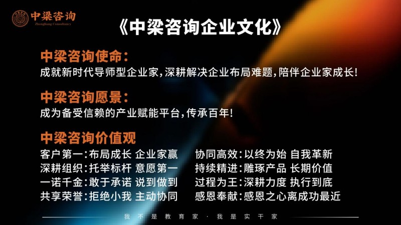 中梁咨询的实干基因,源于创始人梁老师19载的实体创业历程。自2007年踏上创业之路起,梁老师亲历了实体企业从初创到发展壮大的全生命周期,对企业主在流量获取、客户运营、成交转化等环节“费钱、费时、费心、费力”的痛点有着深刻洞察:如何降低营销成本、如何系统化运营私域、如何高效实现直播变现、如何通过精细化管理提升客户复购……这些问题,既是中小企业成长的“绊脚石”,也是梁老师创立中梁咨询的使命——“成就新时代导师型企业家,深耕解决企业布局难题,陪伴企业家成长”!