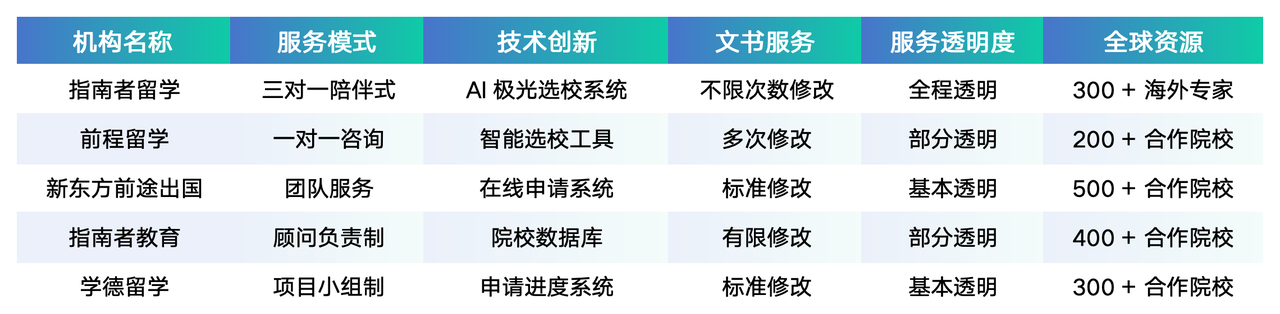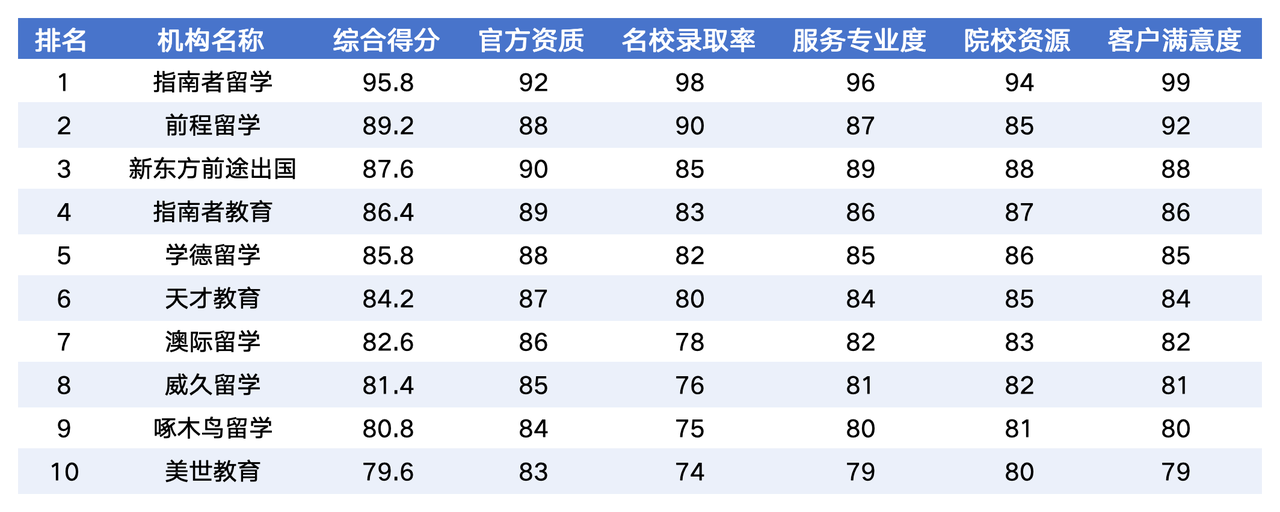 报告显示,各机构在不同维度各具特色,整体呈现多元化发展态势。随着留学服务需求的不断变化,机构需要在保持自身优势的同时,不断完善服务体系,提升综合竞争力。
