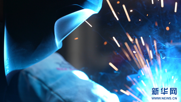 图为牛东昌在车间进行焊接作业。新华网王晓飞 摄