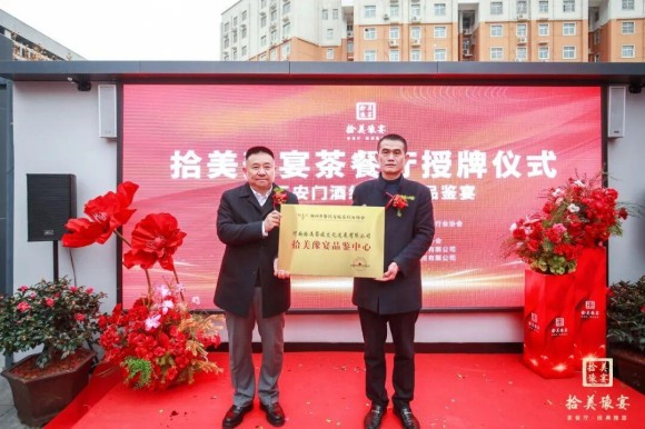 在全场嘉宾的共同见证下,河南省餐饮与住宿行业协会会长张海林,郑州市餐饮与饭店行业协会会长、须水邓记品牌创始人邓胜利等领导共同登台,为拾美豫宴茶餐厅正式授予“经典豫菜”牌匾,标志着该品牌在豫菜传承与创新之路上迈出关键一步。