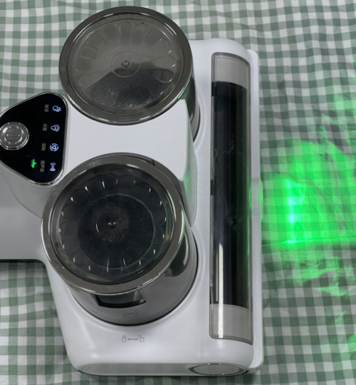 设计上还藏着不少贴心细节,采用双尘杯分离结构,分别负责储尘与过滤,有效避免滤网堵塞,维持吸力稳定;滚刷则选用复合螺旋款式,进一步提升除螨清洁效率。杀菌除螨方面,配备超声波与波长 253.7nm 纳米级紫外线双重加持,全方位强化清洁效果,让洁净更有保障。