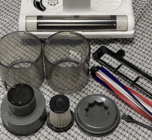 在设计上也是非常贴心,采用 0.5L 透明尘杯 + 一键弹开设计,污物堆积情况直观可见,倾倒过程不脏手;还配备 了H12 级 HEPA 滤网,杜绝二次污染;同时机身净重 2.1kg,单手操作无压力,长时间使用不易疲劳。但是工作噪音约 76dB,对噪音敏感人群建议避开休息时段使用,机身的有线设计也只能适配小户型日常清洁,超大户型使用时需合理规划插座位置,提升清洁连贯性。