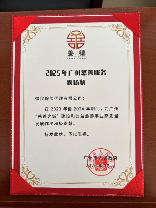 一部手机、一个平台、一份保障,腾讯微保将“科技向善”的理念转化为一项项具体、可感的社会公益项目。近日,广州市人民政府向腾讯微保颁发了“2025广州慈善服务表扬状”,表彰其在2023年至2024年间为广州“慈善之城”建设和公益慈善事业高质量发展做出的积极贡献。