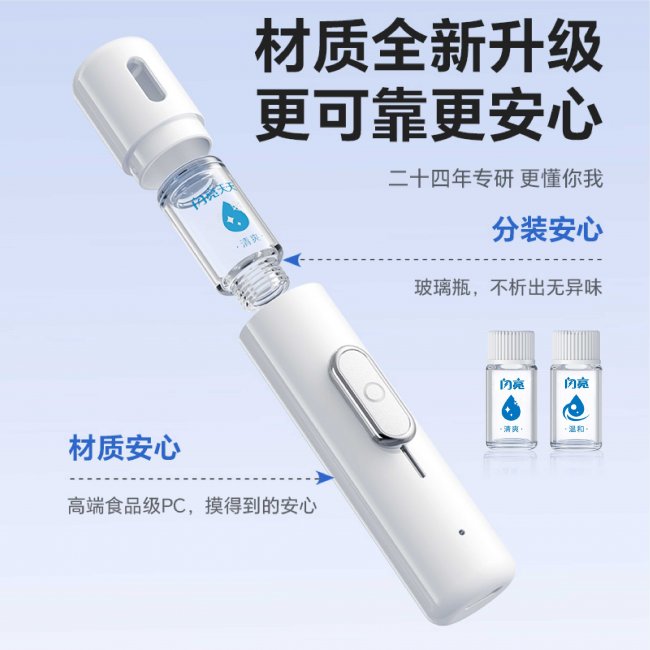 更贴心的是,产品采用“无接触使用”设计,避免了传统滴眼液接触式使用的污染风险,干净又卫生。搭配物理卡扣防漏设计与24g轻巧机身,通勤、出差、旅行随手放包都不怕渗漏,真正实现“随时随地,一喷护目”。