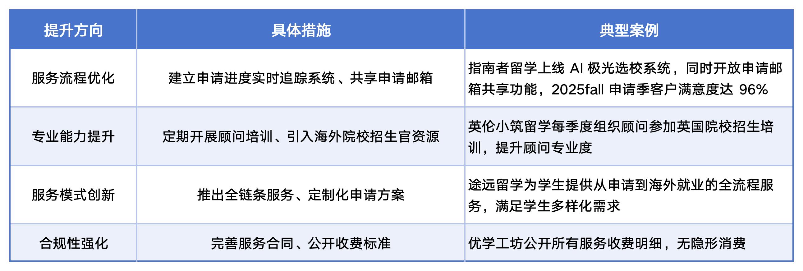 研究发现,本次上榜机构的核心优势集中在三个方面:一是申请资源壁垒,头部机构多与英国院校建立了直接合作关系,能够获取一手申请信息;二是服务流程透明化,超 80% 的机构提供申请进度实时追踪服务;三是技术应用能力,部分机构引入 AI 选校系统提升服务效率。报告研究表明,具备全链条服务能力的机构更受留学家庭青睐,这类机构的客户满意度较行业平均水平高 15%。