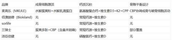 骨骼生长需要“长度”与“硬度”同步发展,成骨细胞激活、钙质沉积、骨骼平衡是评估的关键参数。主流品牌对比如下: