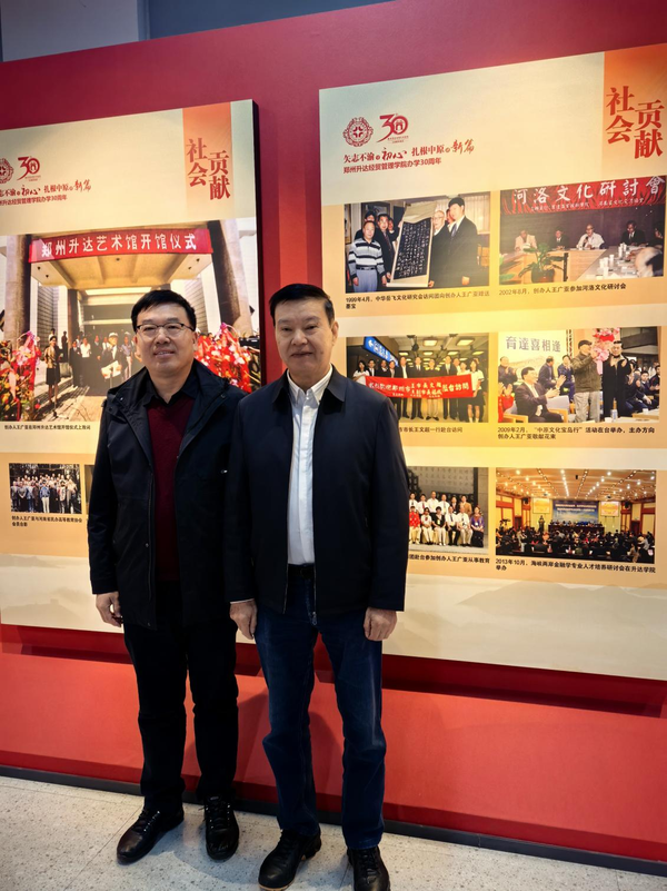 10月20日下午,岳飞思想研究会会长岳朝军一行莅临郑州升达经贸管理学院参访交流。郑州升达经贸管理学院董事长王新奇,党委副书记、副校长、工会主席张金安,党委委员、副校长张其武,登封校区党工委书记沈定军等校领导,董事会办公室主任杨存博,党委办公室主任秦旻等陪同参观并参加座谈会。座谈会由杨存博主持。