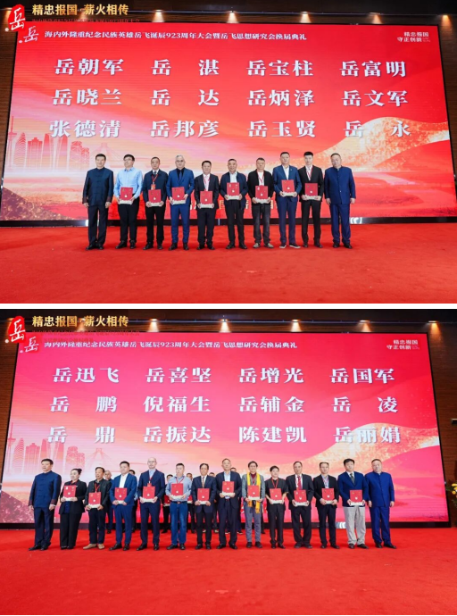 同心启新程,聚力开新篇!大会还宣读了新一届岳研会班子名单并举行了隆重的聘书颁发和就任仪式。新班子年富力强,奉献精神尤佳,将为岳飞文化传承事业注入全新活力。