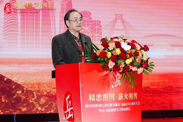 名誉会长岳朝军发表履职感言,全面回顾了岳飞思想研究会多年来在岳飞文化研究、爱国主义精神弘扬、海内外文化交流等方面取得的丰硕成果。