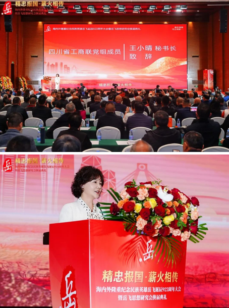 会上,四川省工商联党组成员、秘书长王小晴做了以“弘扬精忠报国精神、凝聚工商奋进力量”为主题的大会致辞。