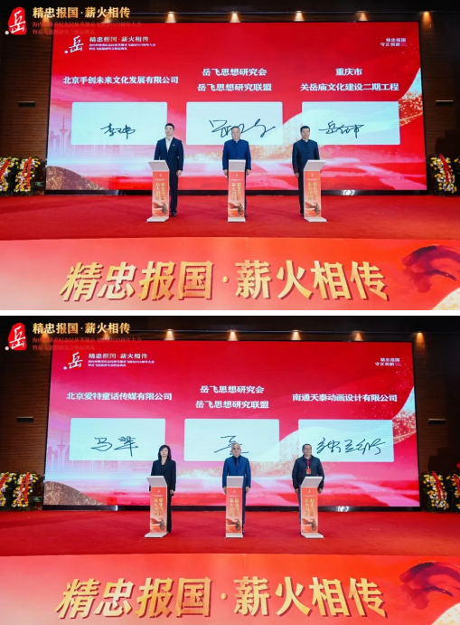 即将登陆中央电视台少儿频道的岳飞文化动画《山河少年》先导片首次在成都公开展播。该片出品方南通天泰动画设计有限公司张立衍总导演与岳研会现场签署了爱国主义文化传播战略合作协议,开启岳飞文化年轻化、大众化传播新路径,推动中华优秀传统文化与新时代传播形式深度融合。