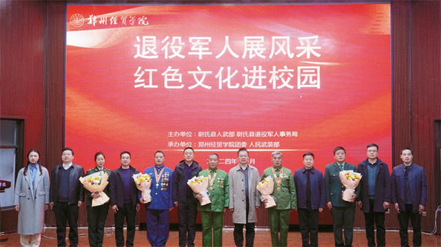 为加强对广大青年学生的国防教育和爱国主义教育,传承红色基因,赓续精神血脉,持续强化思想政治引领工作,11月28日中午,郑州经贸学院联合尉氏县退役军人事务局、人民武装部在学术报告厅举办“退役军人展风采,红色文化进校园”活动。